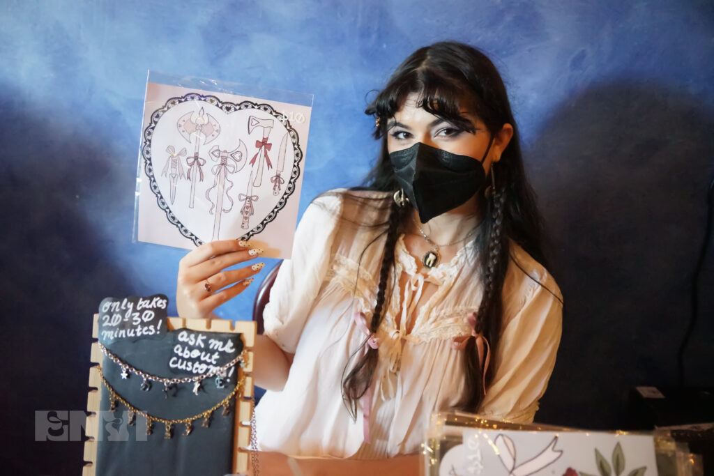 Valiente, donning pastels juxtaposed with a scissor hairclip and battle axe earrings, shared that they prioritized creatives not typically represented at markets.