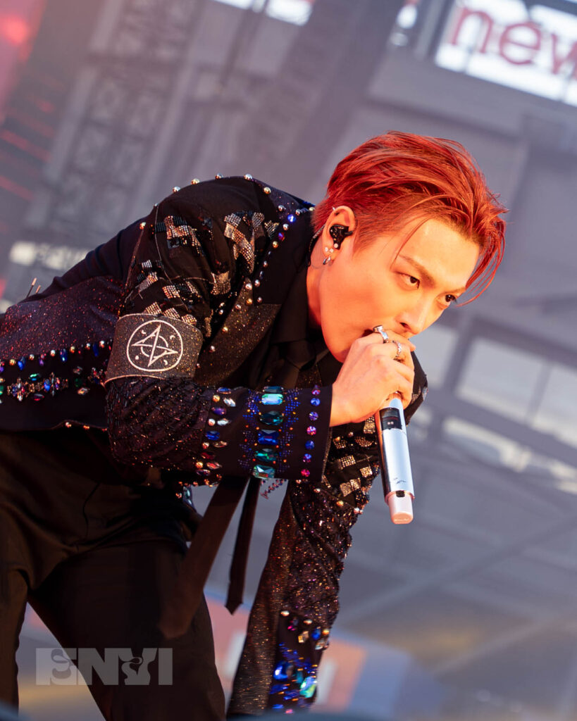 ATEEZ member Jongho performs at NYC’s Citi Field on July 13th, shot by Niamh Murphy for EnVi Media