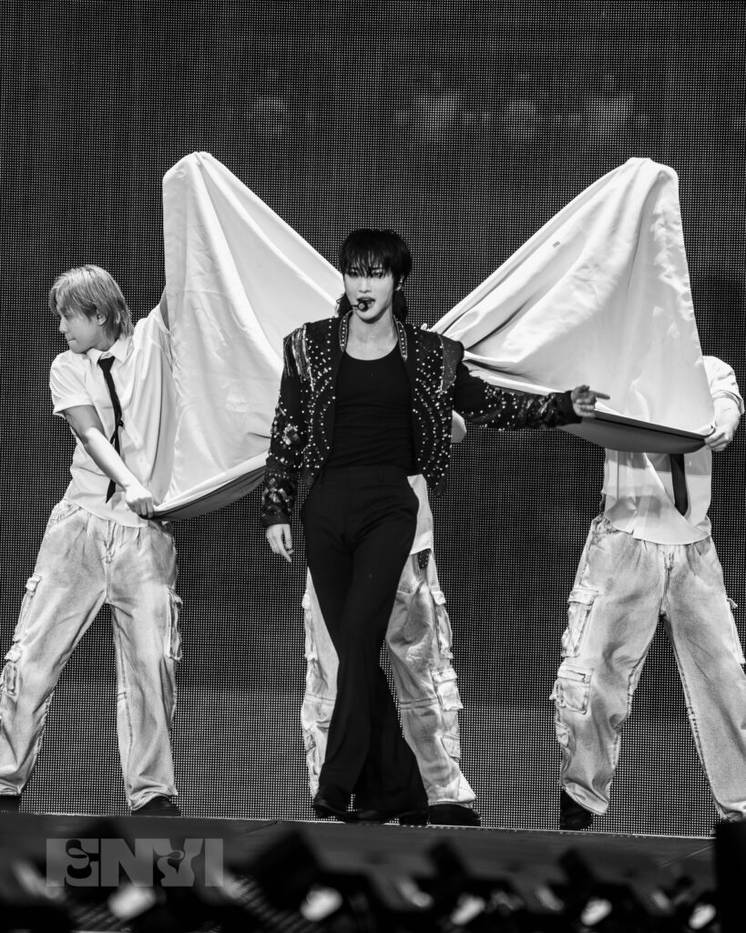 Slide to Me/Skin/Legacy/Sagittarius/To be your light/Creep/NO1/ROAR: Look. I would love nothing more than to wax poetic about each member’s solo, but I donโ€™t think you have the ten years it would take to read it all. So let me say: the way ATEEZ approached weaving unique solo stages into their full set, allowing each member to showcase their personal skills and color, without stopping the momentum of the show, is impressive. The slinky and sensual, like Yunhoโ€™s groovy โ€œSlide to Meโ€ and Seonghwaโ€™s bass-heavy โ€œSkinโ€ are paired back to back, as are Hongjoongโ€™s nightclub banger โ€œNO1โ€ and Mingiโ€™s high octane โ€œROAR,โ€ allowing the crowdโ€™s energy to build. Vocal-heavy and emotive โ€œSagittariusโ€ by Wooyoung and โ€œTo be your lightโ€ by Jongho are also consecutive, creating a moodier bridge in the set from their louder tracks to their more toned down ones. Yeosangโ€™s anthemic โ€œLegacyโ€ slots in neatly between โ€œWE KNOWโ€ and โ€œGuerilla,โ€ where Sanโ€™s slick rock track โ€œCreepโ€ has its moment between the sonically similar โ€œShaboomโ€ and โ€œOutlaw.โ€ย