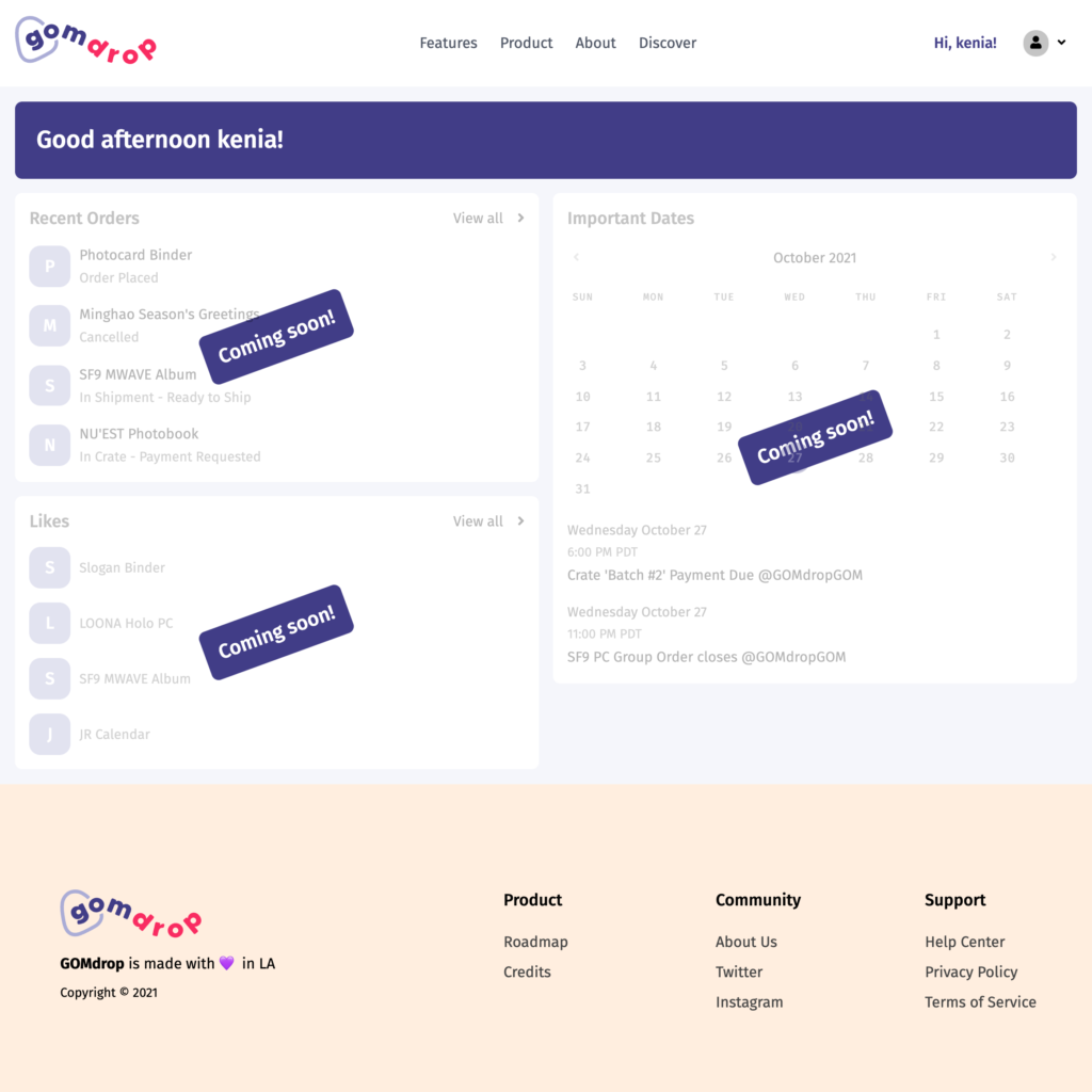 GOMdrop was birthed in 2018, out of Keniaโs frustration with existing tools. โSpreadsheets were confusing for joiners to refer to for updates, emails had to be largely typed by hand,โ described Kenia, โand calculating EMS (second payments) and domestic shipment rates was time-consuming.โ She tested out different tools, but was still frustrated by having to learn how to use them and pay for extra features. Keniaโs goal was to make something simple, which combined the processes. โI wanted to create a single website that essentially does everything that a GOM would need to run a Group Order, from creating the form to shipping items domestically,โ she explained.