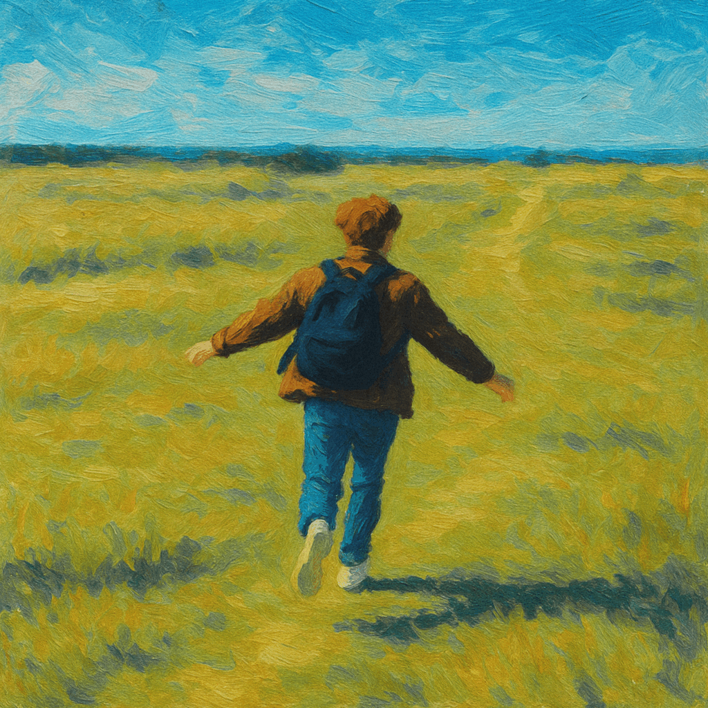 In a world of healing your inner child, the phrase “child again” often evokes strong images and emotions. For suggi, “running around fearlessly” is what he thinks about. This sentiment is reflected in the album artwork for child again, too. A figure, supposedly a younger suggi, runs through a wide-open field, a backpack slung over his shoulders, and his arms outstretched. This suggi has not much to worry about, not even where he is running to.