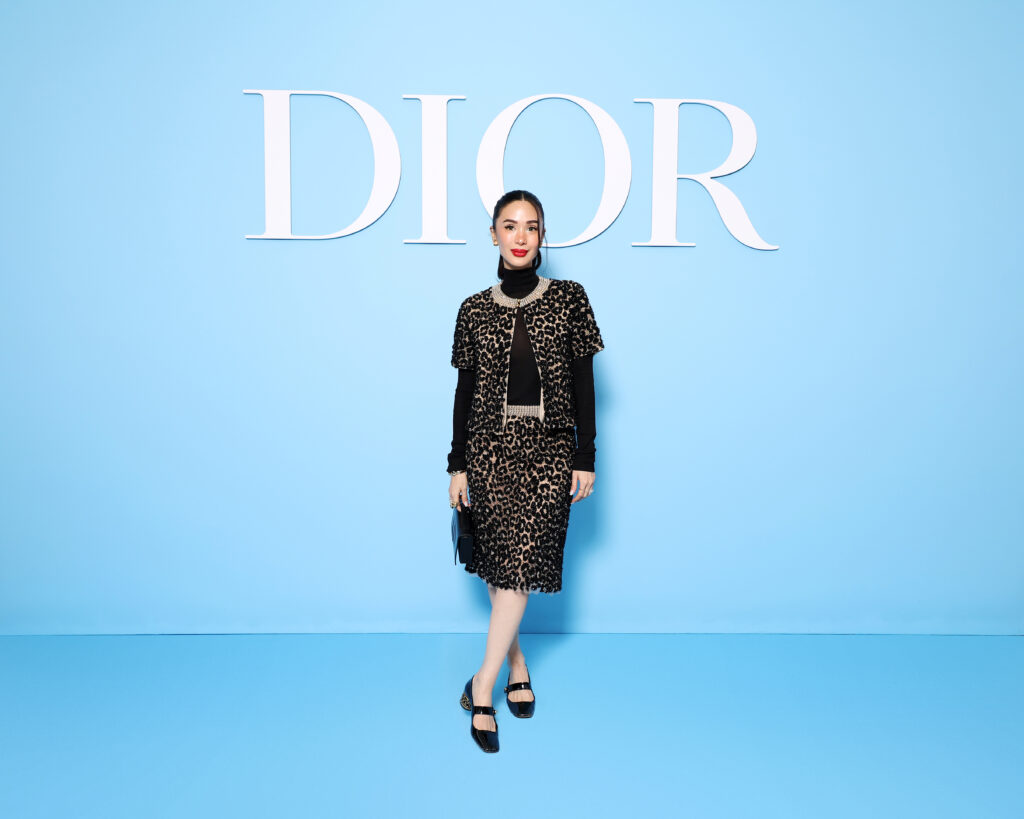Heart Evangelista made a grandiose return to Paris Fashion Week in one of the yearโ€™s most popular trends. Wearing a glamorous leopard-print wool cardigan and matching skirt over a black turtleneck, the Filipino actress channeled class and confidence. To finish her look, she accessorized with a plethora of Dior pieces.