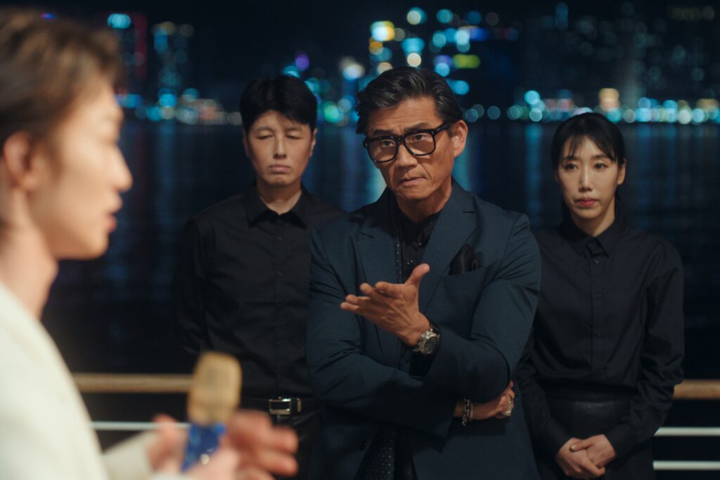 For the first time in the series, Kitty begins to understand the true scope of Minho’s lifestyle — which causes a one-sided rift to form between the pair. Thanks to her misunderstanding of what “yacht chic” meant, Kitty finds herself mistaken for the waitstaff, which makes her feel inadequate. In an attempt to distract herself from her own misfortunes and make her friend feel better, Yuri takes Kitty to try on a dress by the famous designer Yi-soo (Soy Kim). Although the intentions are pure, the impromptu game of dress up ruins Eunice’s debut performance.