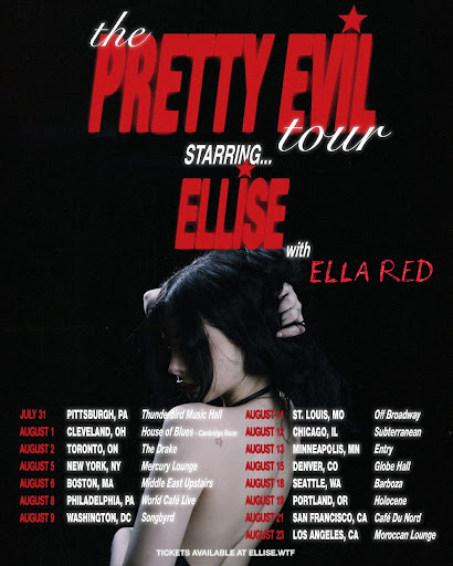 If you’re trying to prepare your vocals before the tour, Ellise’s music can be found on Spotify, Apple Music, and YouTube. To keep up with Ellise and the PRETTY EVIL tour, you can follow her on Instagram and TikTok.