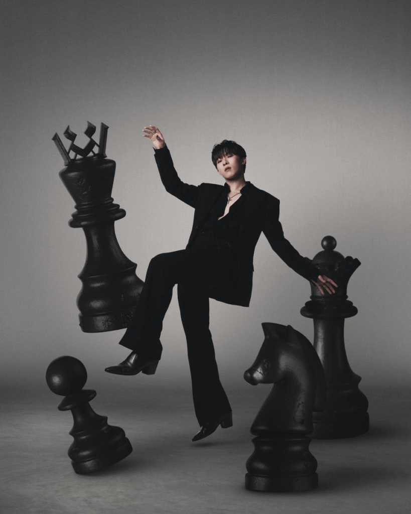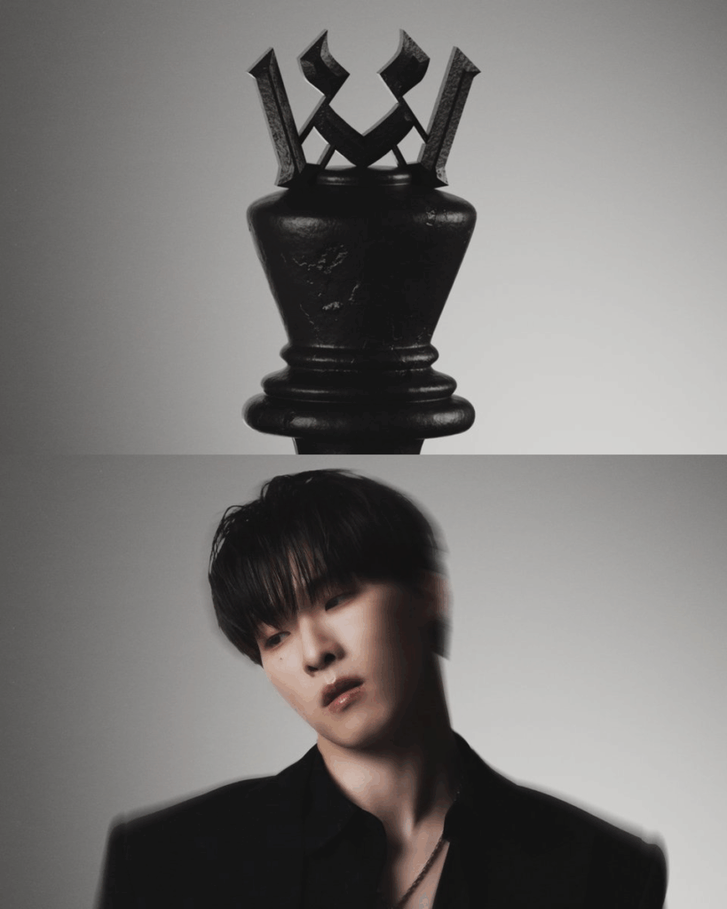 That nuance of YinYang ultimately feeds into the “Pretty Girl” music video. Directed by Nqmoh, the video unfolds a chess match: a metaphorical quest to win the heart of a girl. With Kim and Gun embodying the rival Kings of Black and White chess pieces, the stage is set inside a wonderland-like castle with checkered floors. The opening shot lingers on a girl seated at the chess board, where her hands guide the first move for the White King as the camera cuts to Gun, dressed in White. When the move is countered by the Black King, the frame shifts to Kim, clad in Black.