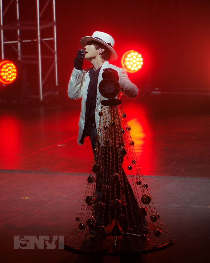 VOLCANO: This song began with a quiet yet powerful presence as Genta beat on the drums with precision and focus. First with slow hits, he then fastened his pace, creating a heart-pounding and unforgettable beat that started off “VOLCANO” for an explosive performance. TJ’s precise moves were so invigorating, it seemed as if Genta was controlling them with each beat of the drum. To make the performance even more enchanting, red and white petal shaped confetti blew in from both sides of the stage, making it a magical experience.