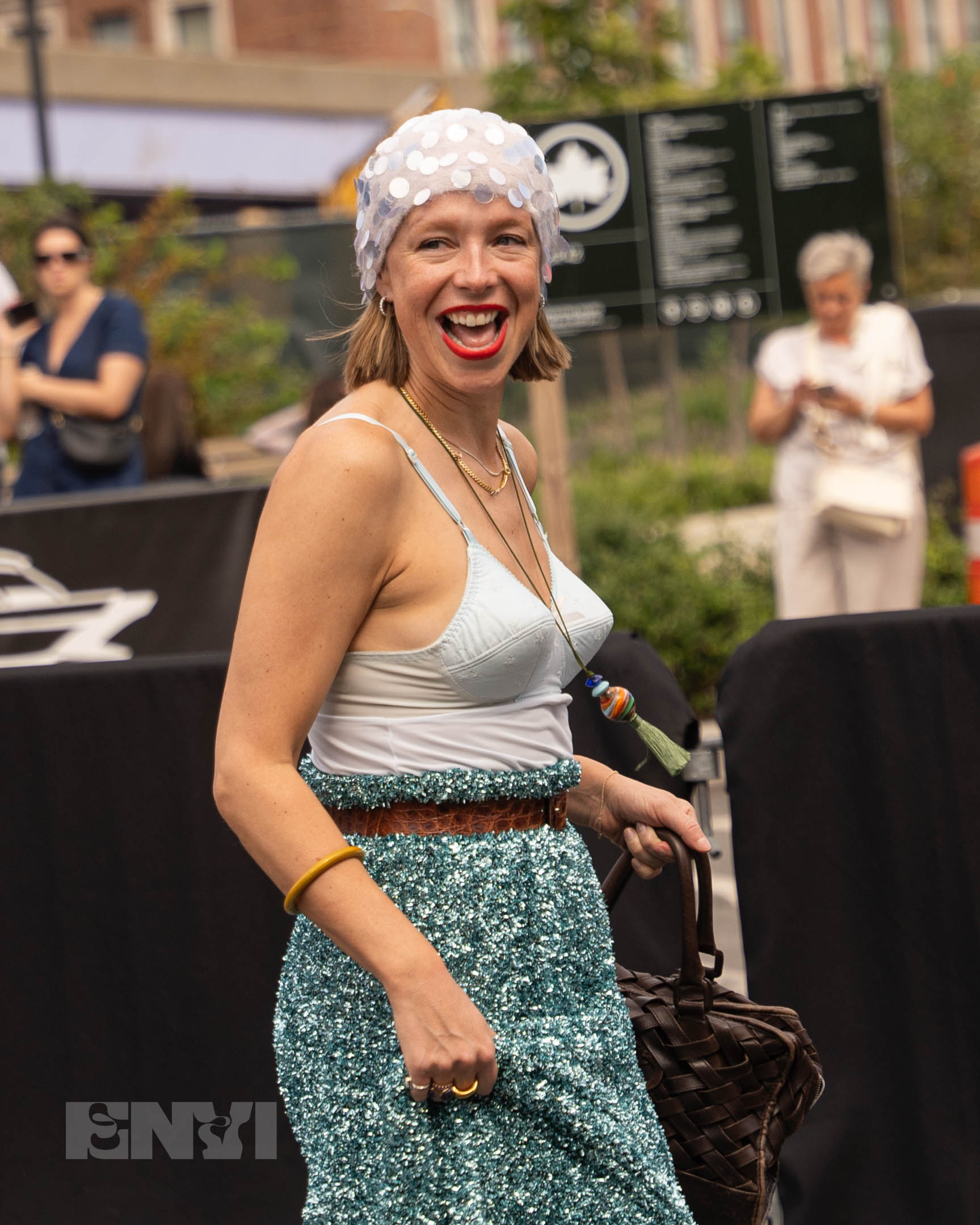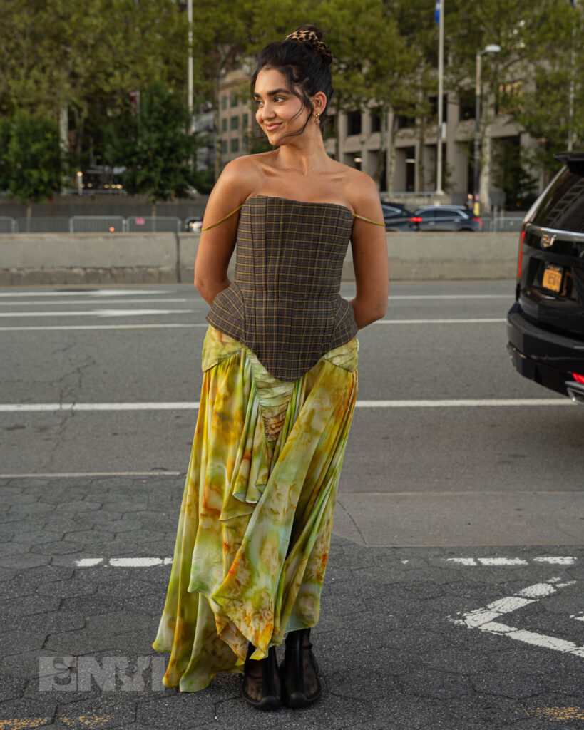 NEW YORK, NEW YORK – Geraldine Viswanathan outside the Collina Strada show. Photo by Niamh Murphy