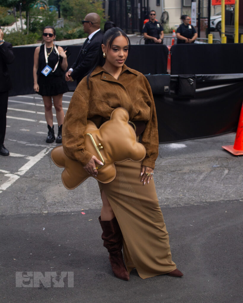 NEW YORK, NEW YORK – Jordyn Woods outside the Luar show. Photo by Ellie Forte