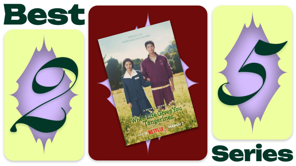 Set in Jeju Island, South Korea, When Life Gives You Tangerines follows bold and outspoken Aesun (IU), a girl with big dreams to make it out of her small town and away from her family business. She finds solace in Gwansik (Park Bogum), the steady presence who stays close throughout every shift in life, including her motherโs untimely death. Told across 65 years, the series traces how their relationship evolves as they grow up, face family pressure, navigate poverty and emotional setbacks, and learn what it really takes to choose each other again and again. Add in a dash (a lot) of generational trauma once their daughter Geumyeong enters the picture and has to navigate her own identity and struggles.