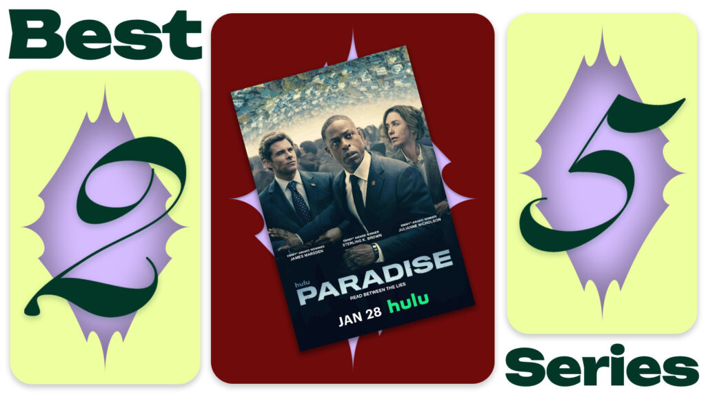 One of the most talked about shows of the year, Paradise is the latest mind-twisting must-see thriller โ think Lost (2004) and Scandal (2012) โ but packaged into a bite-sized season optimized for streaming. Secret Service agent Xavier Collins (Sterling K. Brown) is tasked with uncovering the truth behind the Presidentโs murder. The more he digs, the more the investigation turns inward until heโs suspicious of everyone around him and questions everything he has ever known and swore to protect. Episode one ends with one of the best slow reveals in recent television history, leaving viewers scrambling for the remote to watch episode two.