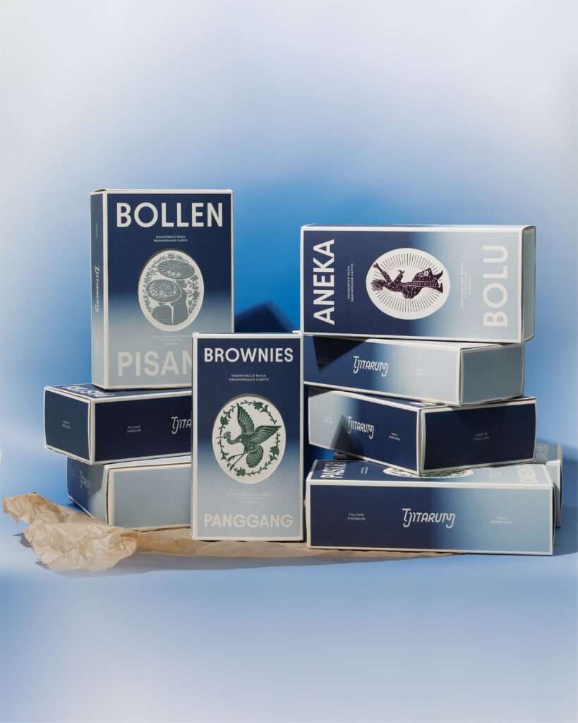 Most of Tjitarum’s design process is manually done – from graphic exploration and coloring to hand-painted facade design. This analog approach becomes Tjitarum’s visual foundation, presenting something that is honest, humane, and close to tradition. Such an example comes in the form of Tjitarum’s packaging – illustrations of various aspects of Sundanese culture adorn the package, all along with the gradation of Tarum color.