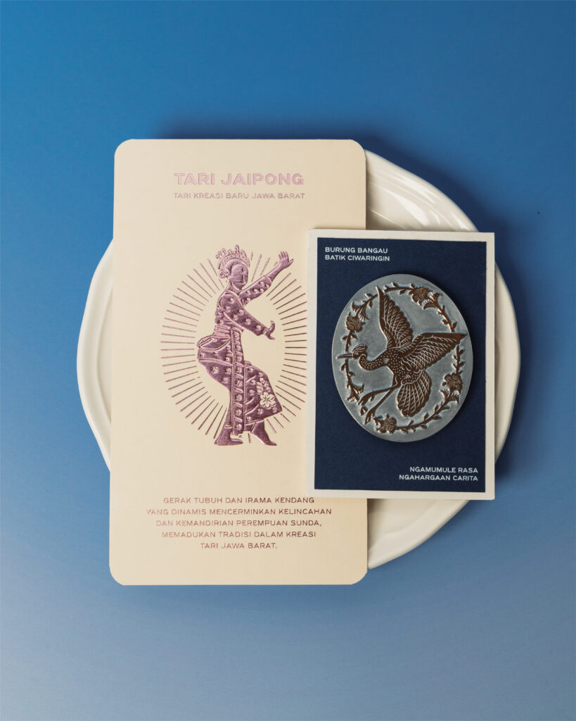 Inside the packaging, a note card welcomes the eye, explaining the icons. Every icon is developed carefully, to honor the cultural narrative in West Java.