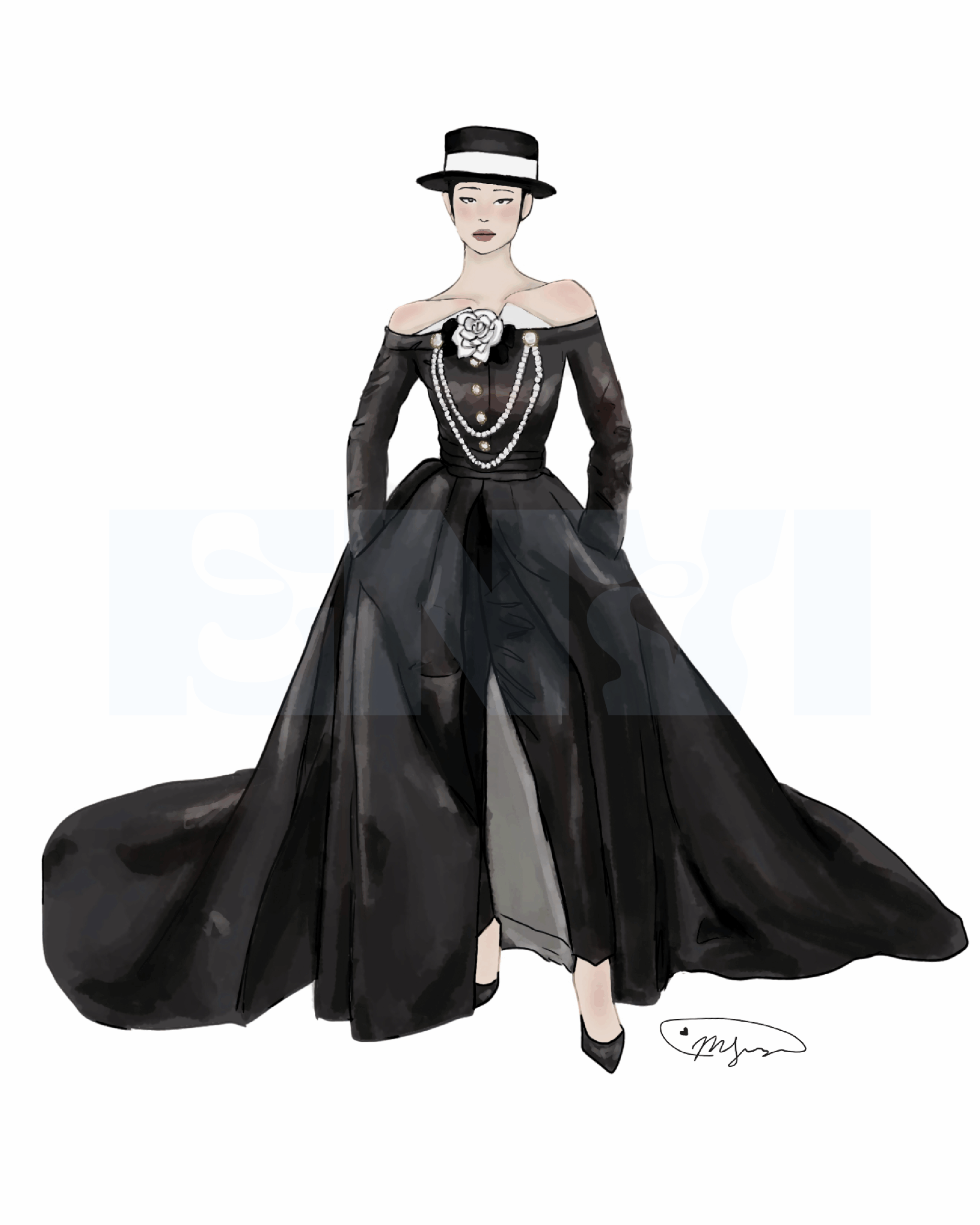 I especially loved the white-and-black boater hat, which (literally) topped off her look and paired perfectly with her neat, sleek black bun. She looked straight out of an old black-and-white film, a perfect ensemble painted by the inspiration of 1920s and 1930s Coco Chanel runways. — M.L