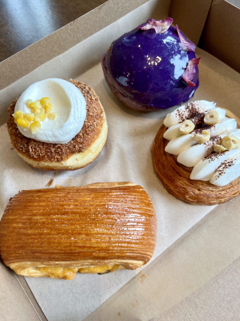 - Maja blanca donut – delicate corn and coconut cream-filled brioche topped with sweet corn and dark, roasted coconut.