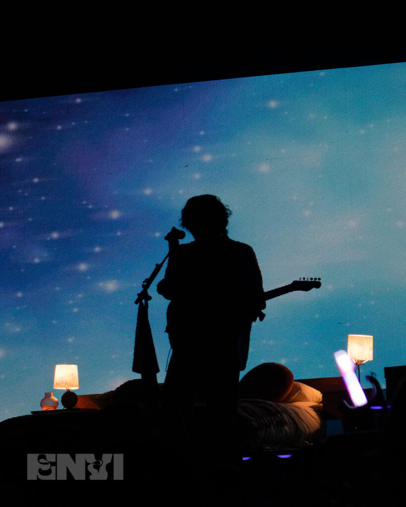 If you’ve never watched any of The Rose’s videos on TikTok, then let me tell you now, you’re missing out. This (peak) sense of humor was on full display in Boston. For the majority of the set, The Rose performed among a bedroom set up. Comfortable couches, plush rugs, and a bookshelf filled with books and plants created a cozy bedroom feel. Woosung even noted how there’s a memory foam mattress on the bed and demonstrated how one can’t effectively jump on it.